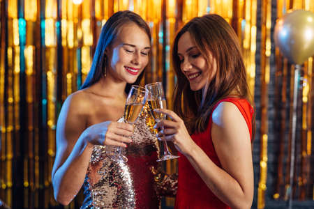 Two girls toasting celebrating New Year or Christmas