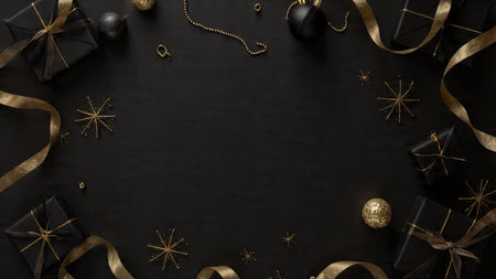 Elegant holiday elements softly illuminated over deep black tones.