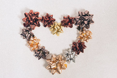 Abstract composition made of bow heart. Valentine day theme. Love and romance concept. Minimal style. Flat lay. Top view