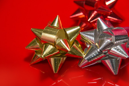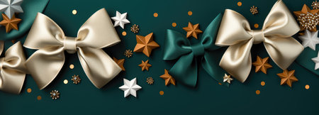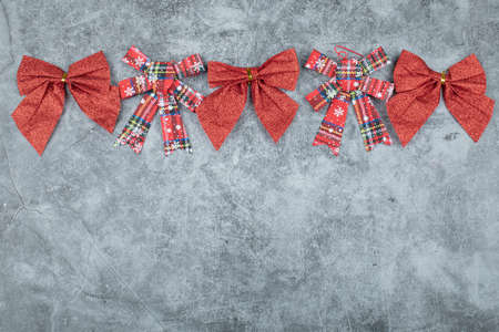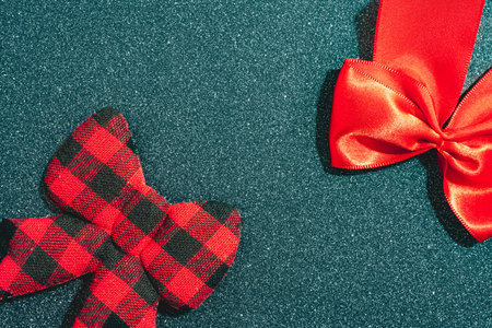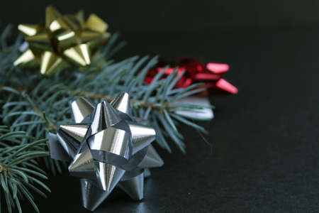 holiday gift bows on a black dark new year Christmas background with copy space for text