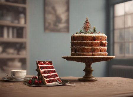 Still life of Christmas festive table with gingerbread cake