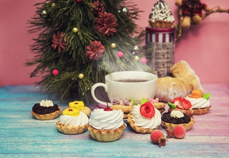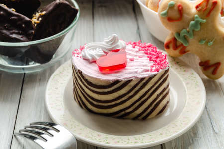 Cake on a bright background. Cake and cakes for tea or coffee. Bright new year images