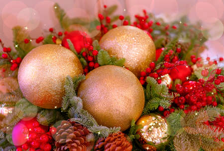 Christmas decorations on a Christmas tree. Christmas background, selective focus.