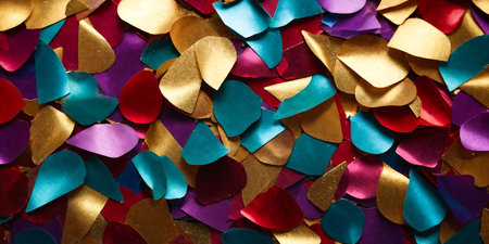 Bright and colorful confetti rains down on the ground, creating a vibrant atmosphere filled with joy and excitement during a festive celebration or party.