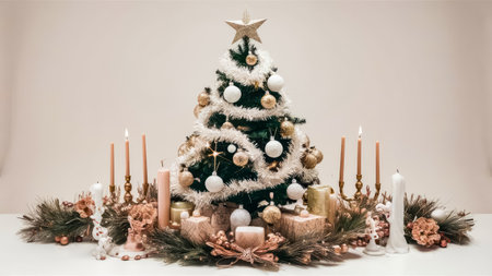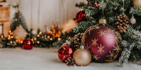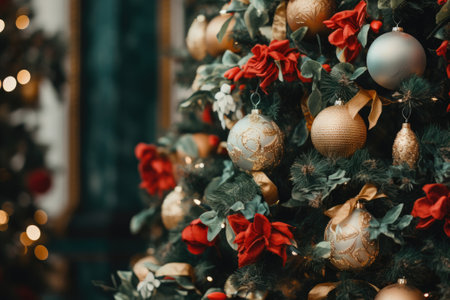 Festive Holiday Decorations: Christmas Tree Ornaments and Tradition. Festive holiday decorations decorated with ornaments and a tree.