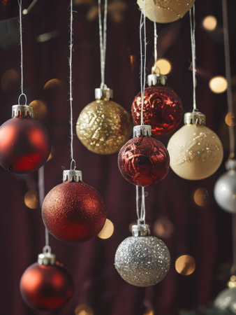 Festive Christmas Garland With Red and Gold Baubles Hanging From Ceiling