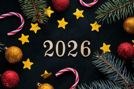New Year 2026 background. Number of the coming year in Christmas decoration.