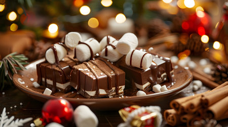 Decadent chocolate dessert with creamy marshmallows and a festive holiday atmosphere perfect for Christmas or New Year and gatherings