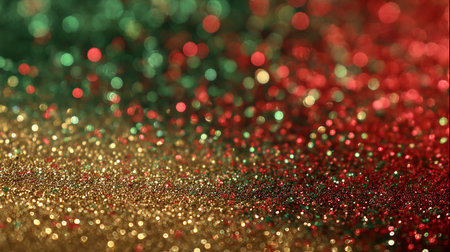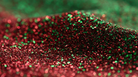 This close-up image features a vibrant red and green glitter surface that sparkles beautifully, perfect for festive decorations and celebrations.
