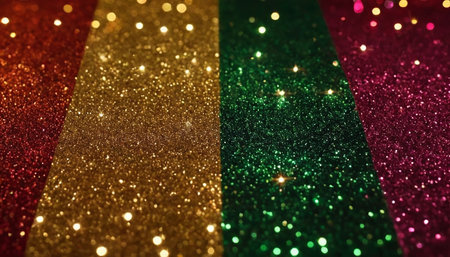This vibrant and colorful image showcases a shimmering glitter background with a captivating bokeh effect, perfect for enhancing creative projects and festive themes.