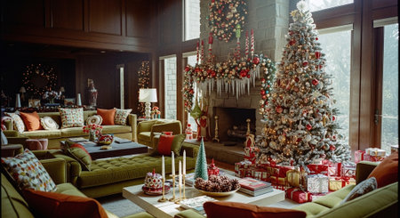 A beautifully decorated living room filled with holiday spirit and gifts for a joyful Christmas celebration.
