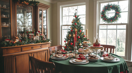 A beautifully decorated table awaits guests with a festive spread for Christmas.