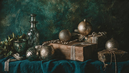 Carefully arranged ornaments showcasing a luxurious festive mood.