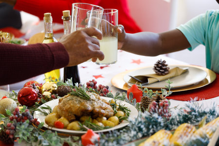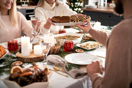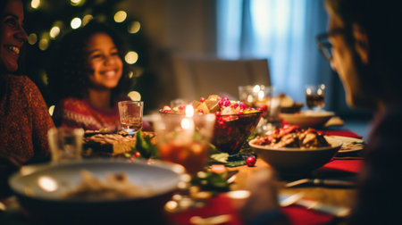Christmas dinner with family at home. Selective focus. Holiday.
