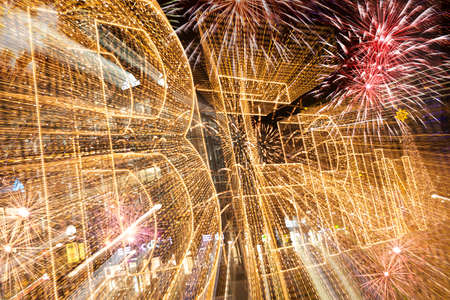 Creative light trails and fireworks sparkles in night celebration setting, perfect copy space for holiday themes