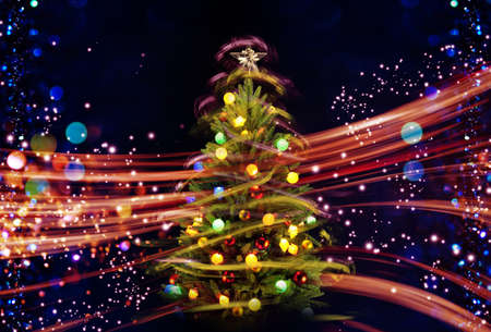 Light shining Christmas tree abstract background, motion blurred. High quality illustration