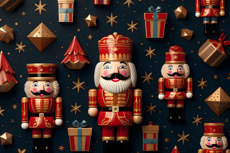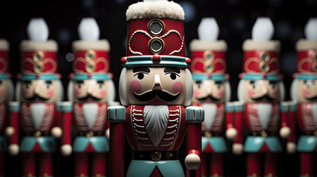 Traditional Christmas holiday wooden nutcrackers, toy soldiers. Generative AI illustration