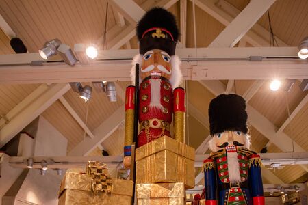 Decorative toy wooden nutcracker in store during Christmas holidays: Tallinn, Estonia - October 22, 2020