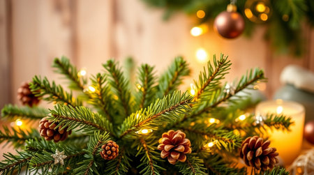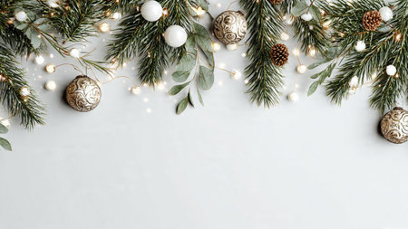 High-quality minimalist Christmas background with festive pine branches and clear text space.