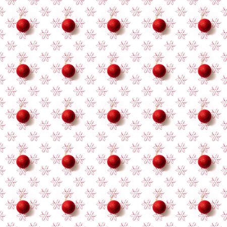 Simple pattern made of red baubles on pastel background. Creative winter composition. Christmas party and festive concept. Minimal style.