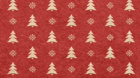 Beautifully crafted festive red Christmas pattern featuring small trees and snowflakes, perfect for holiday decorations and seasonal designs.