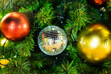 Christmas decorations on the Christmas tree. Celebrating Christmas, New Year and festive concept.