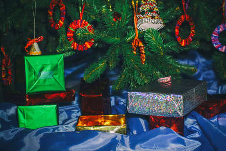 Christmas and New Year gifts in beautiful boxes under the Christmas tree