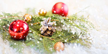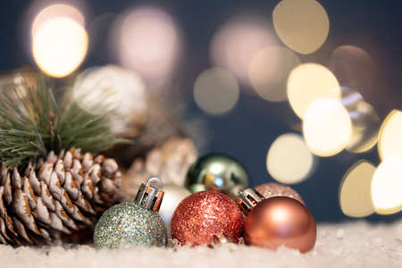 Christmas decoration on bokeh background. Happy New Year and Merry Christmas!