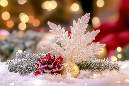 Sparkling decorations embody the spirit of celebration in a winter wonderland setting.