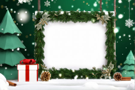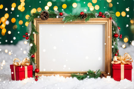Snowy Wonderland: A Photo Frame Enriched with Greenery and Gift Delights