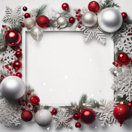 Christmas frame glowing with soft shadows and glimmering ornaments.