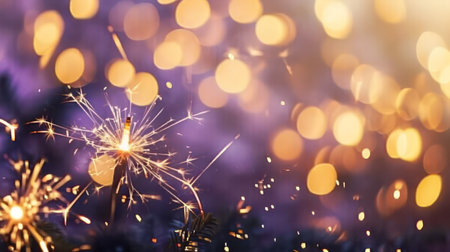 Christmas and New Year party background with sparkler and bokeh lights
