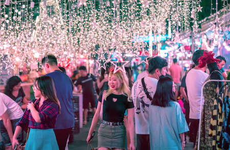 Bangkok, Thailand - 6 January 2020 : People are traveling in Art Box night market Bangkok.