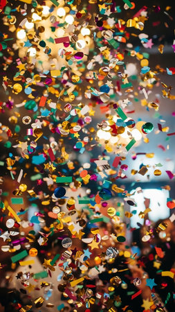 Confetti falling like rain in a festive setting --ar 3:2 Job ID: 5f96f842-65c2-4af3-b108-6a503304c8a3