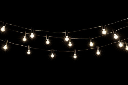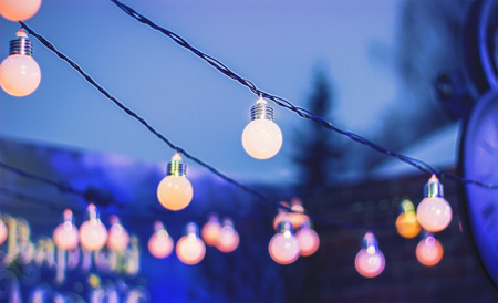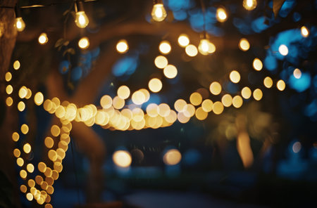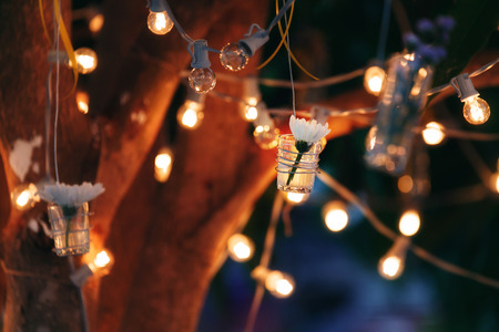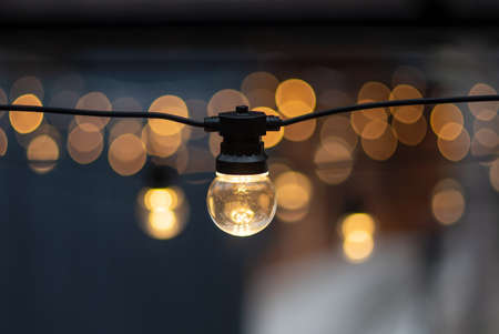string wired with warming Light Bulbs hanging in the area of wedding events celebration in the night