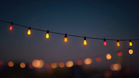 Delightful outdoor string lights create a charming atmosphere against a twilight sky, perfect for evening gatherings or romantic celebrations in open spaces.