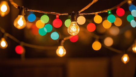 Festive Colorful String Lights Night Photography - Illuminated Holiday Decorations
