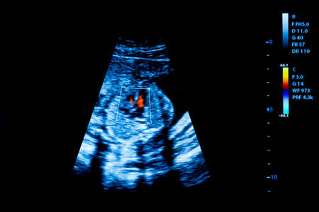 Ultrasound revealing a developing human fetus within the womb, symbolizing pregnancy, prenatal care, and the beginning of new life and family planning