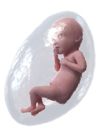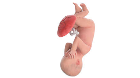 3d rendered medically accurate illustration of a Human fetus inside the womb, Baby