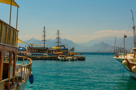 ANTALYA, TURKEY: The old harbor in Antalya and the port with ships and boats on a sunny summer day, Turkey.
