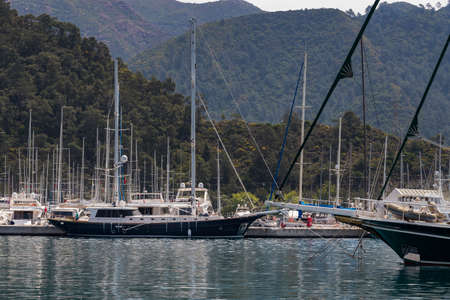TURKEY, MARMARIS - APRIL 30, 2017: Port with yachts boats and boats in the touristic eco-friendly city of Marmaris in Turkey.