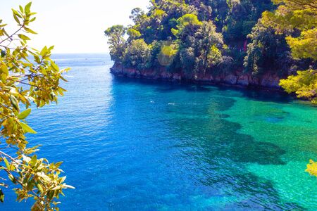 Beautiful sea bay. Steep mountain shores. Mediterranean Sea.