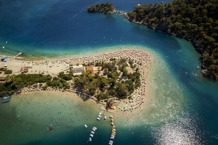 Aerial view of the beach of Oludeniz and Blue Lagoon entrance, Fethiye, Turkey