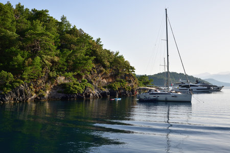yacht sailing in the mediterranean sea high view canyon fethiye turkey