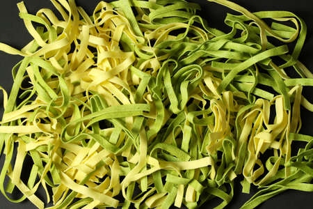 Fettuccine macaroni classic on a black background. Basis for dishes of Italian cuisine.
