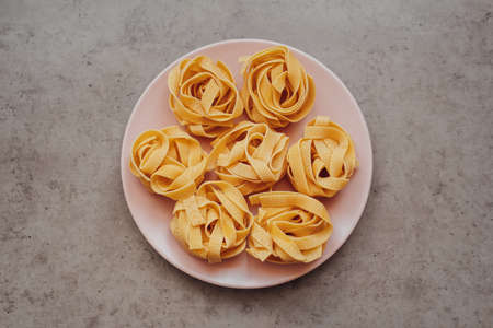 beautifully twisted nest-shaped wheat noodles made from high quality durum wheat flour, pasta or noodles close-up