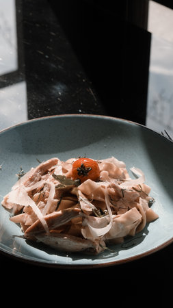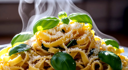 AI Generated. Radiant Plate of Fettuccine - Shadows and Flavors Unite