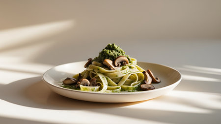 AI Generated. Creamy Pesto Tagliatelle with Mushrooms - Gourmet Pasta Dish