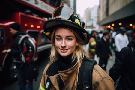 Trailblazing gender equality: a powerful image of a female firefighter, redefining norms in the workplace