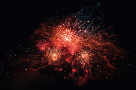 fireworks exploding against black night sky on new years eve, created with generative ai